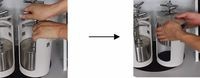卸罐打開機(jī)蓋,用手?jǐn)Q松兩角螺母,拿開Y型絲桿、扁擔(dān)、墊片,取下球磨罐。